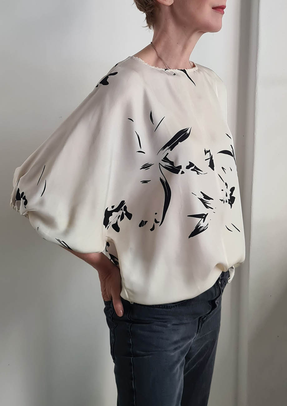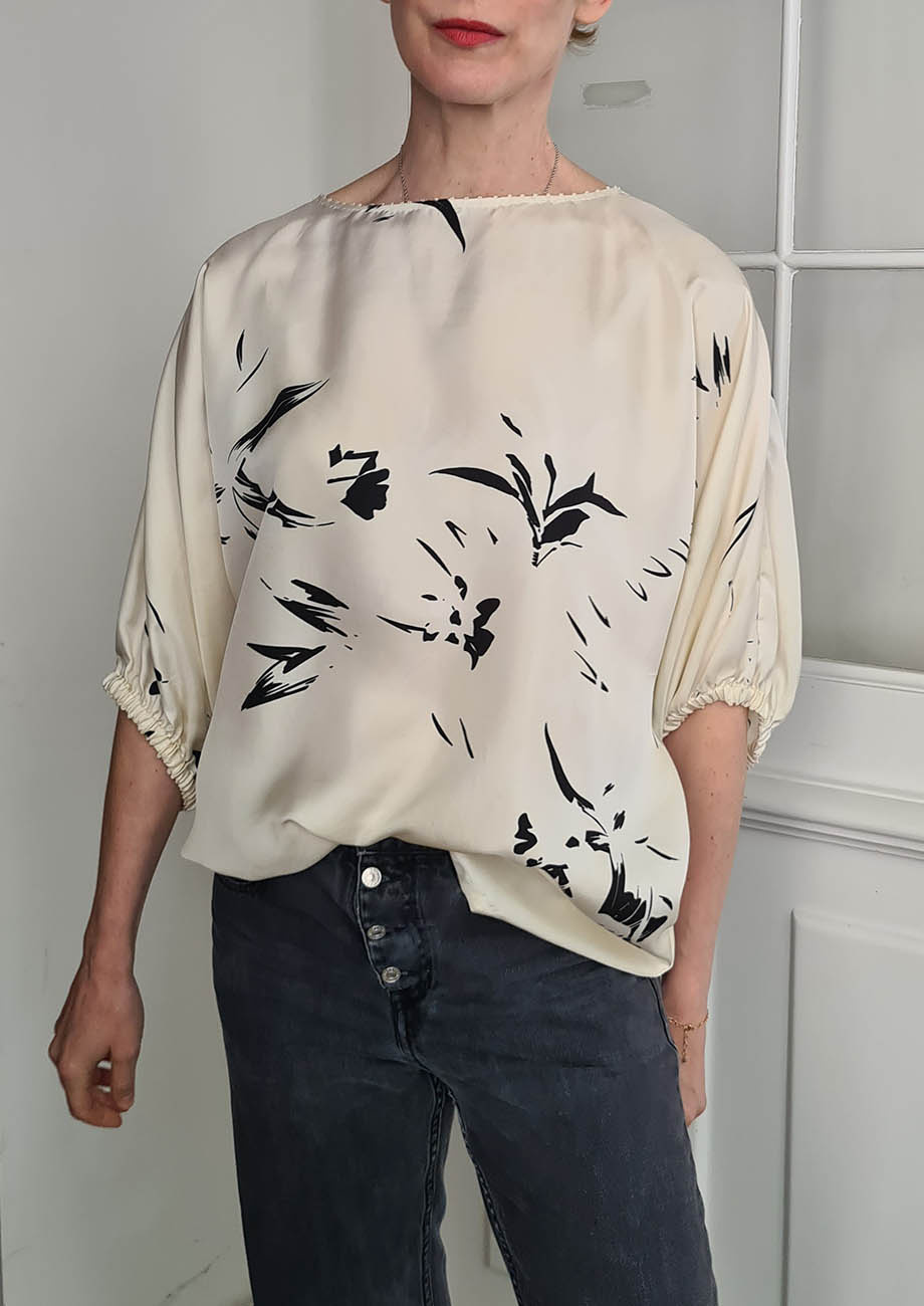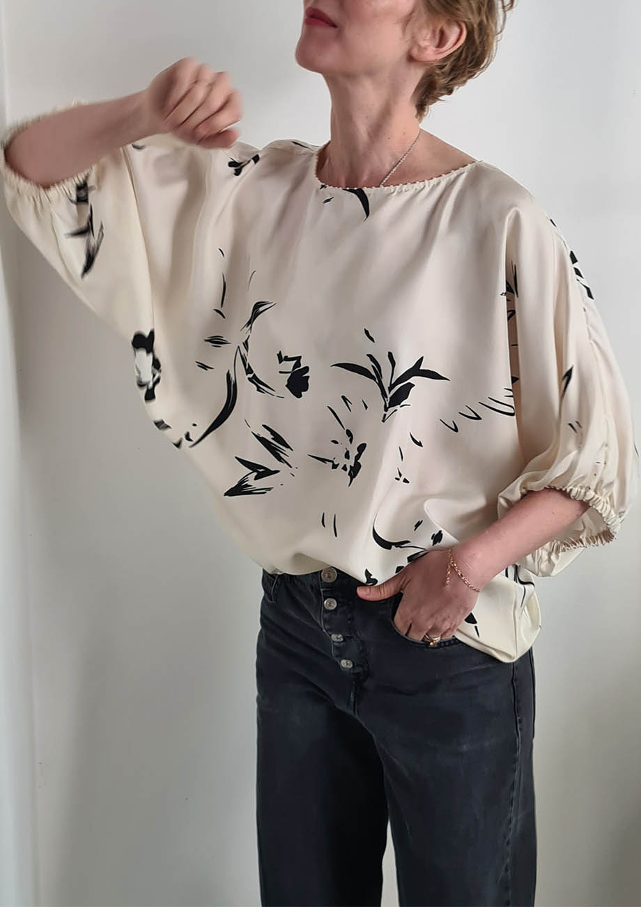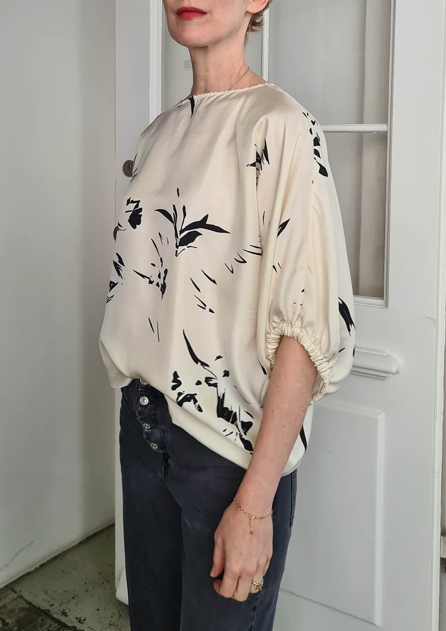 HALBER-ÄRMEL SEIDENTOP - CREME