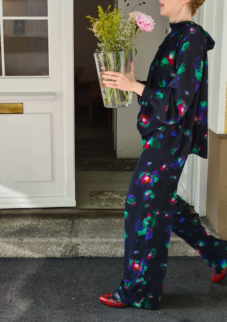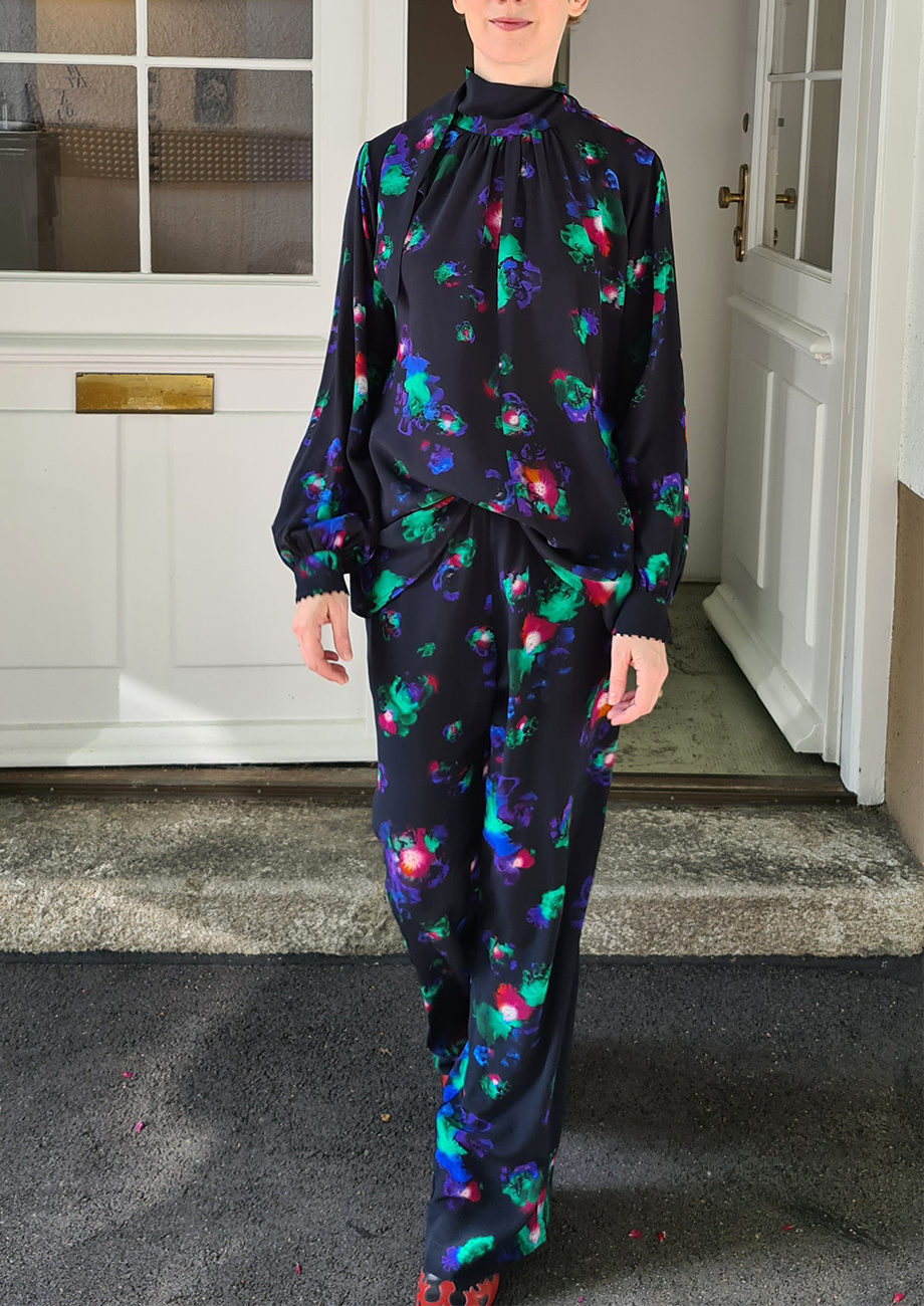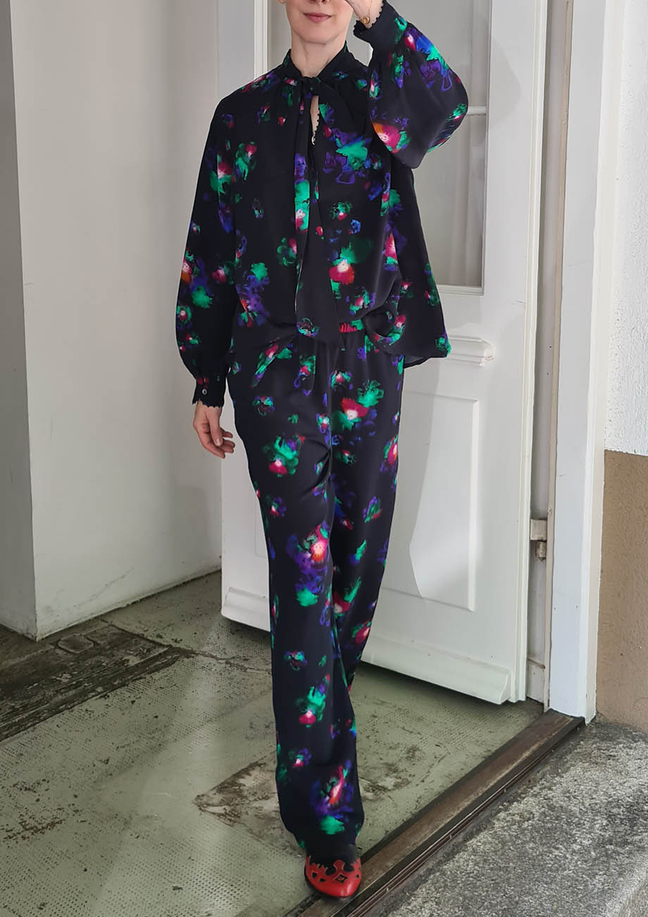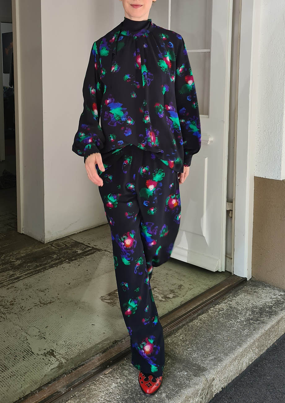 Mit der Bluse im gleichen Print, wird es zum Overall-Look.