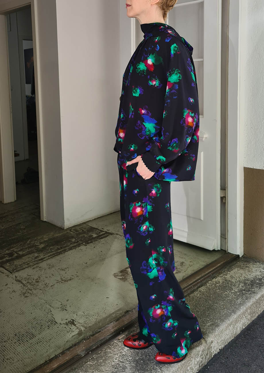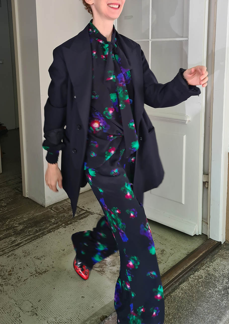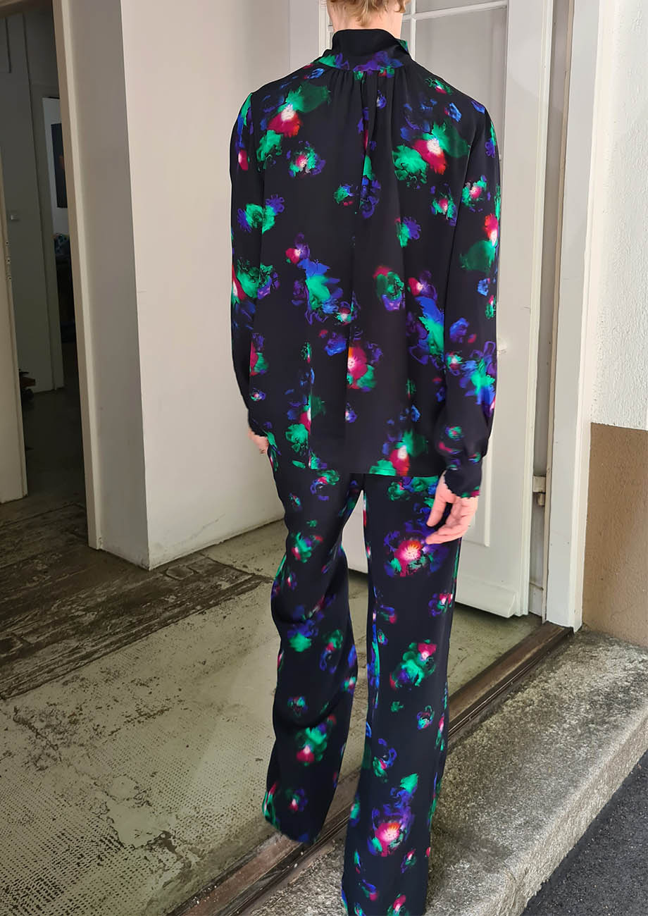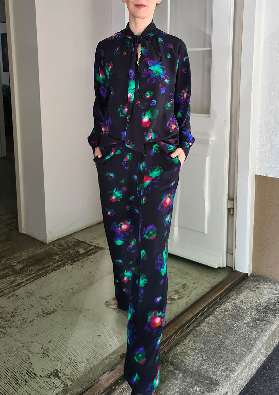 Mit der Bluse im gleichen Print, wird es zum Overall-Look.