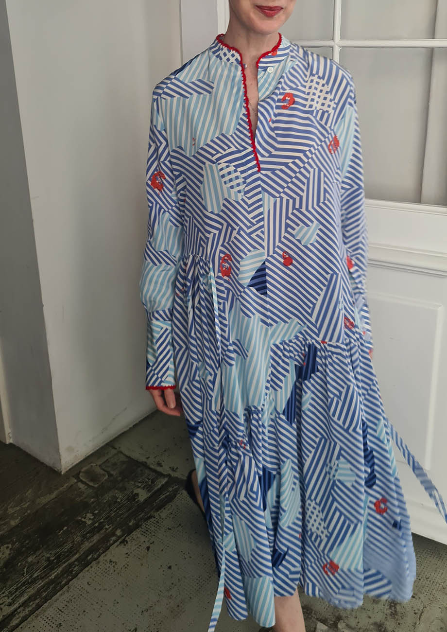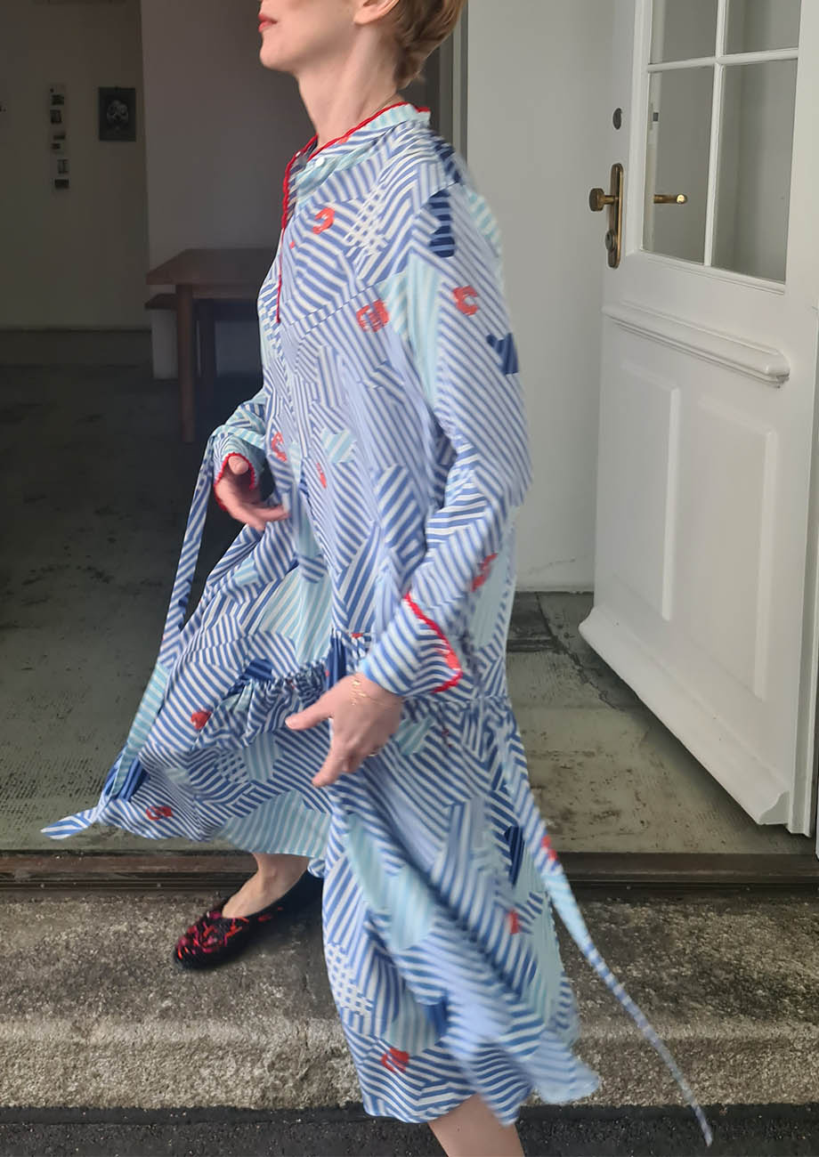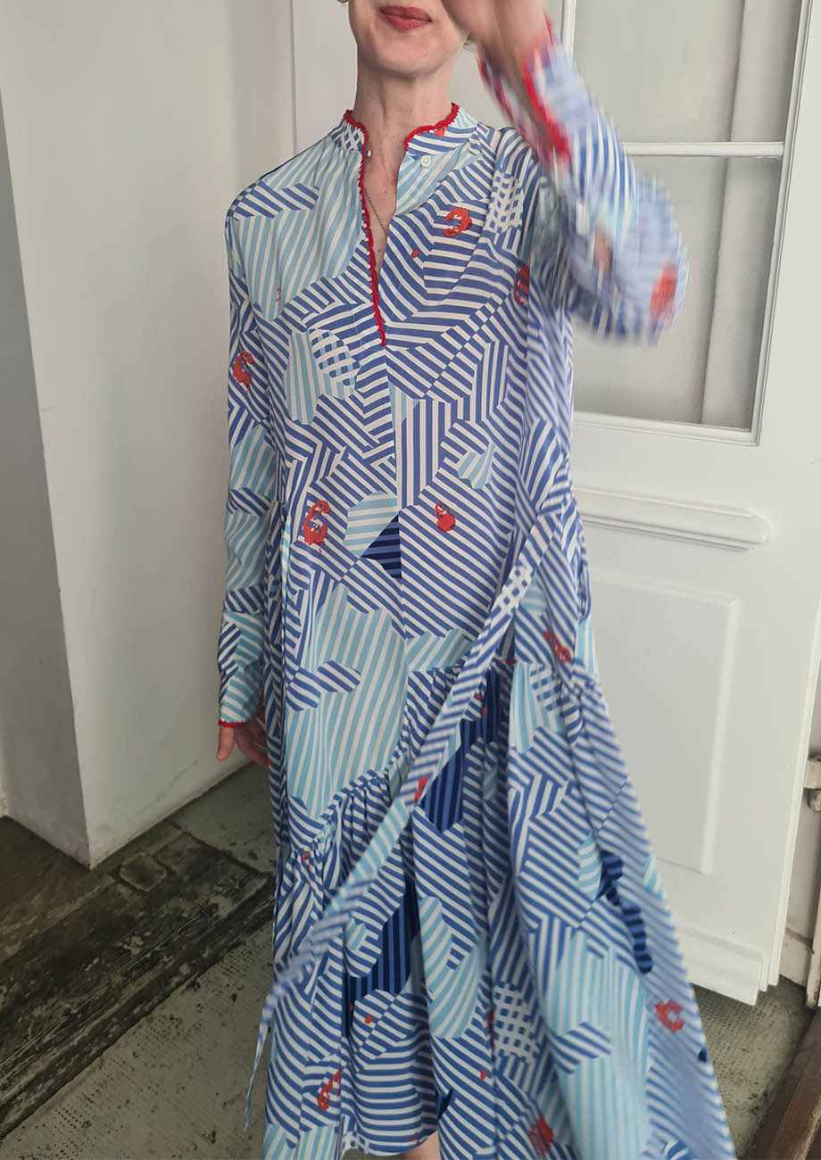 MY LIEBLINGS SEIDENKLEID - STREIFEN BLAU