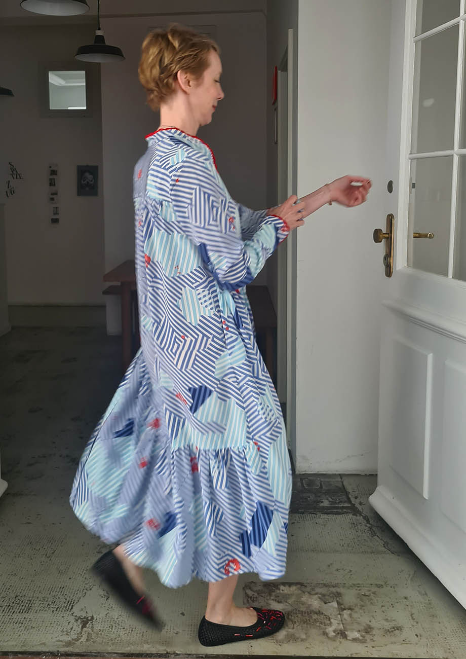 Bei unserem „Lieblingskleid" sorgen zwei Bindebänder im Taillenbereich für Tragevielfalt und verschiedene Looks.