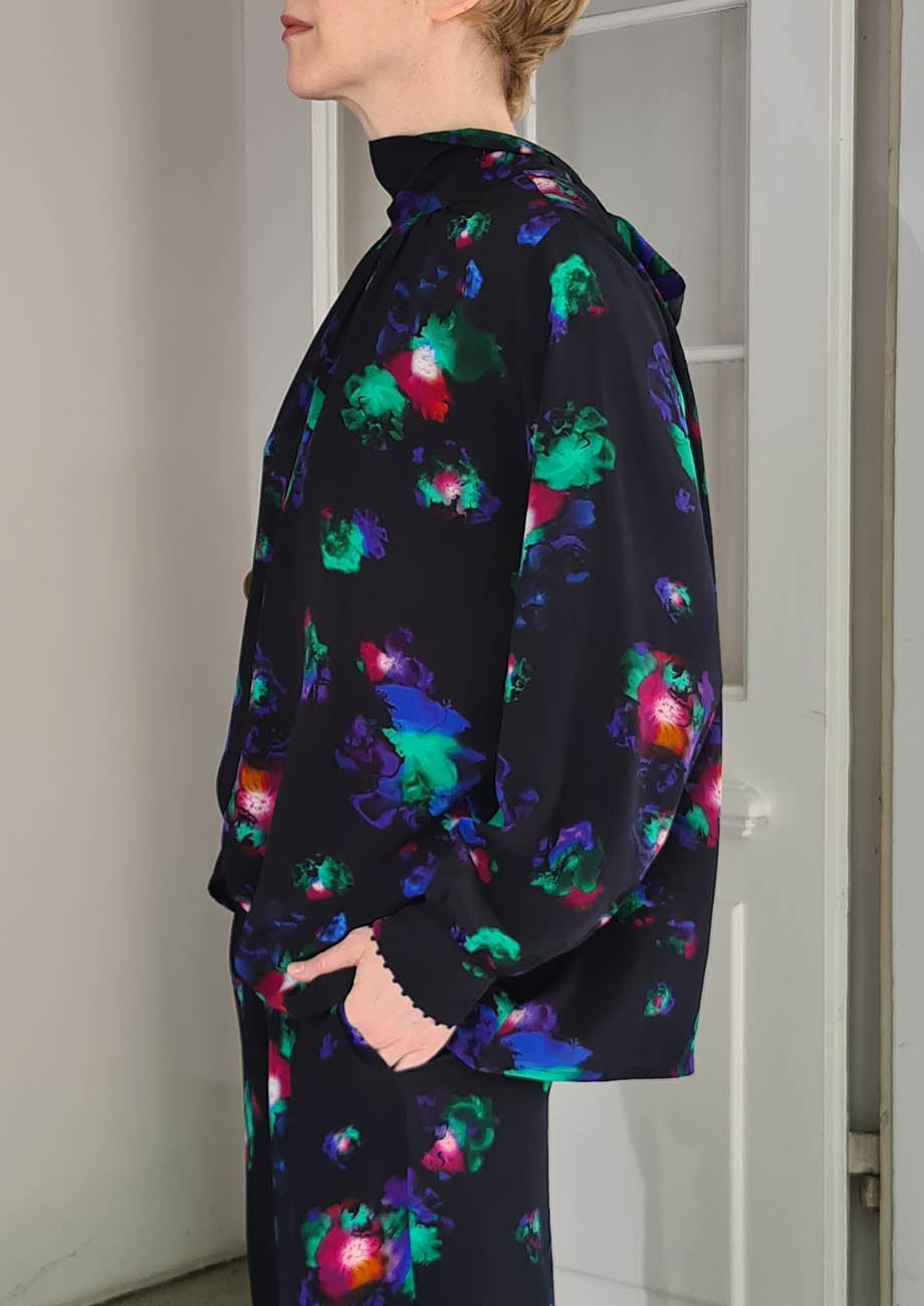 So ist der kleine Schlitz am Halsloch entweder hinten oder vorne. Die Hand bestickten Labels wurden hier extra seitlich Richtung Schulternaht eingenäht, so können Sie die Bluse ganz nach Belieben tragen.