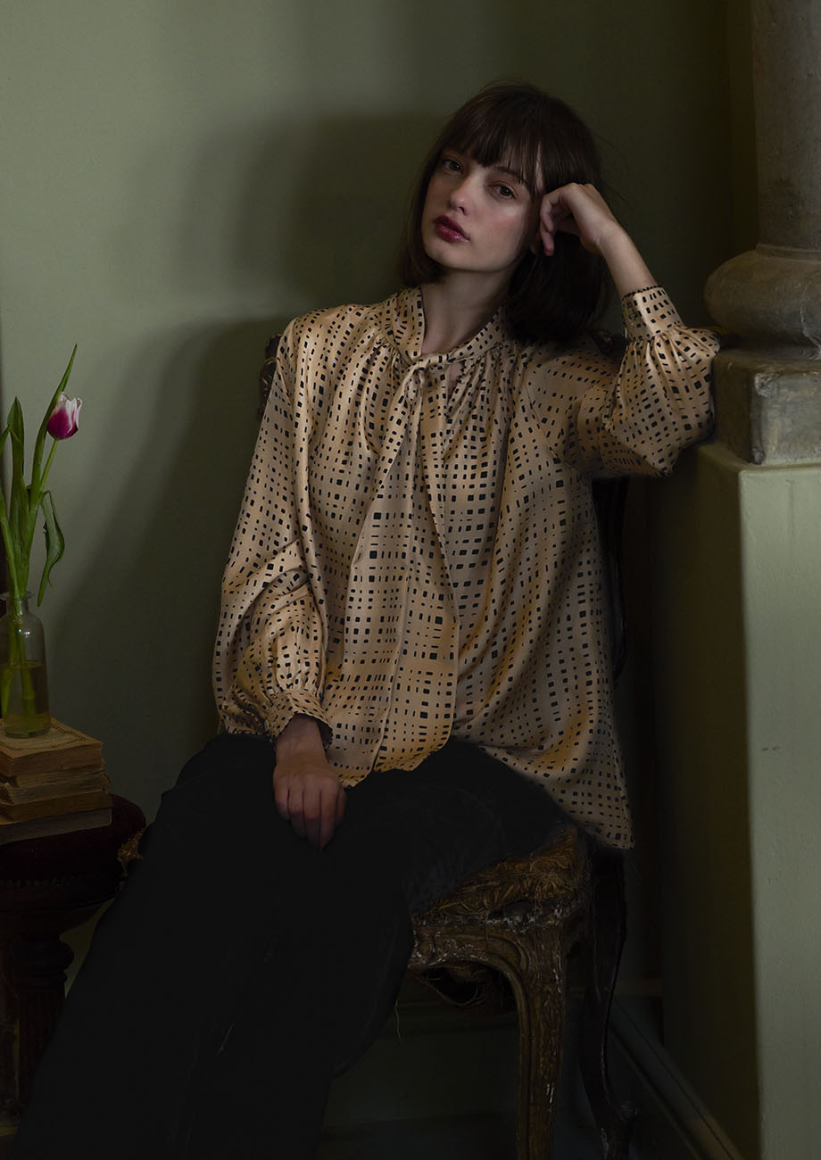 NEW TIE SEIDENBLUSE - CHECK BURNT ORANGE