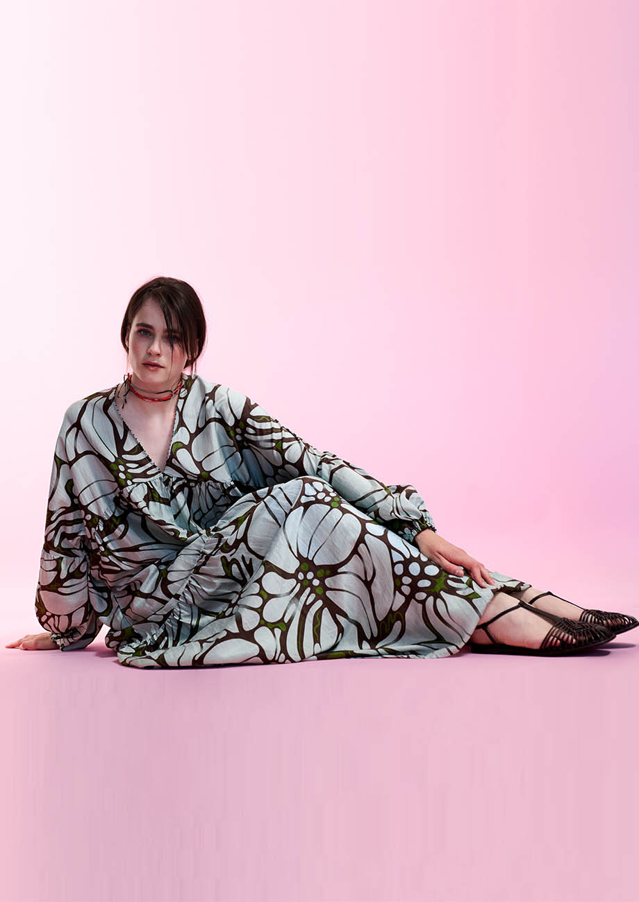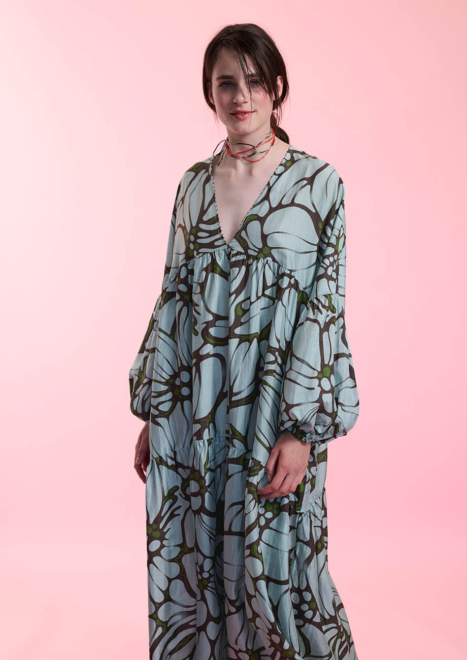 BEACH SILK GOWN LONG - FLOWER IRON