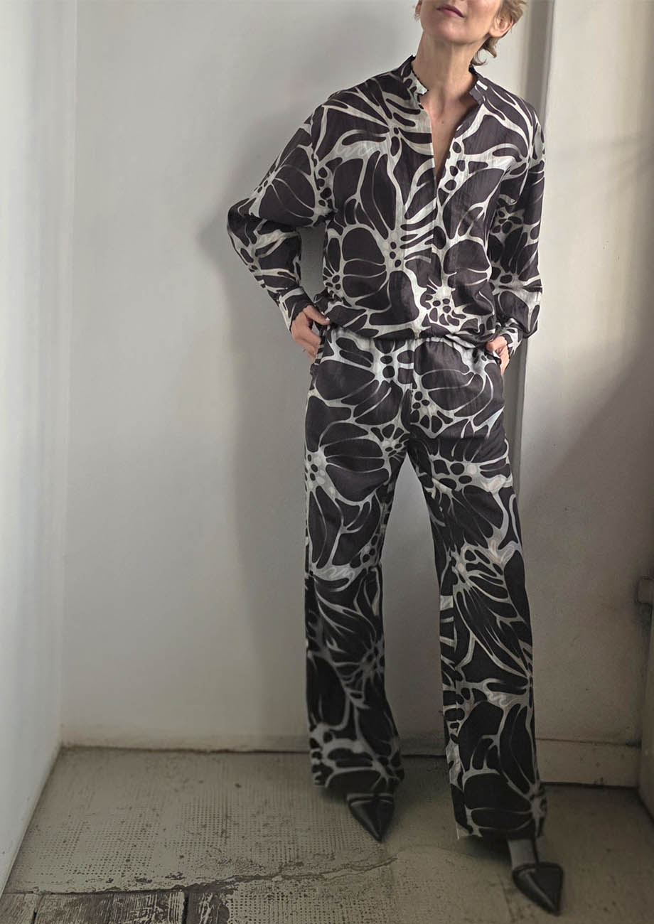 LONG BASIC SILK PANTS - FLOWER NIGHT