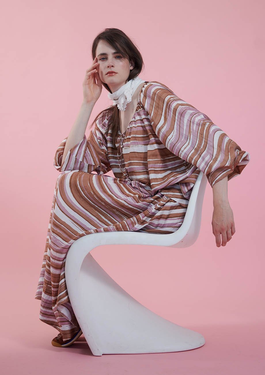 The look is crafted in our new summer-light silk quality.