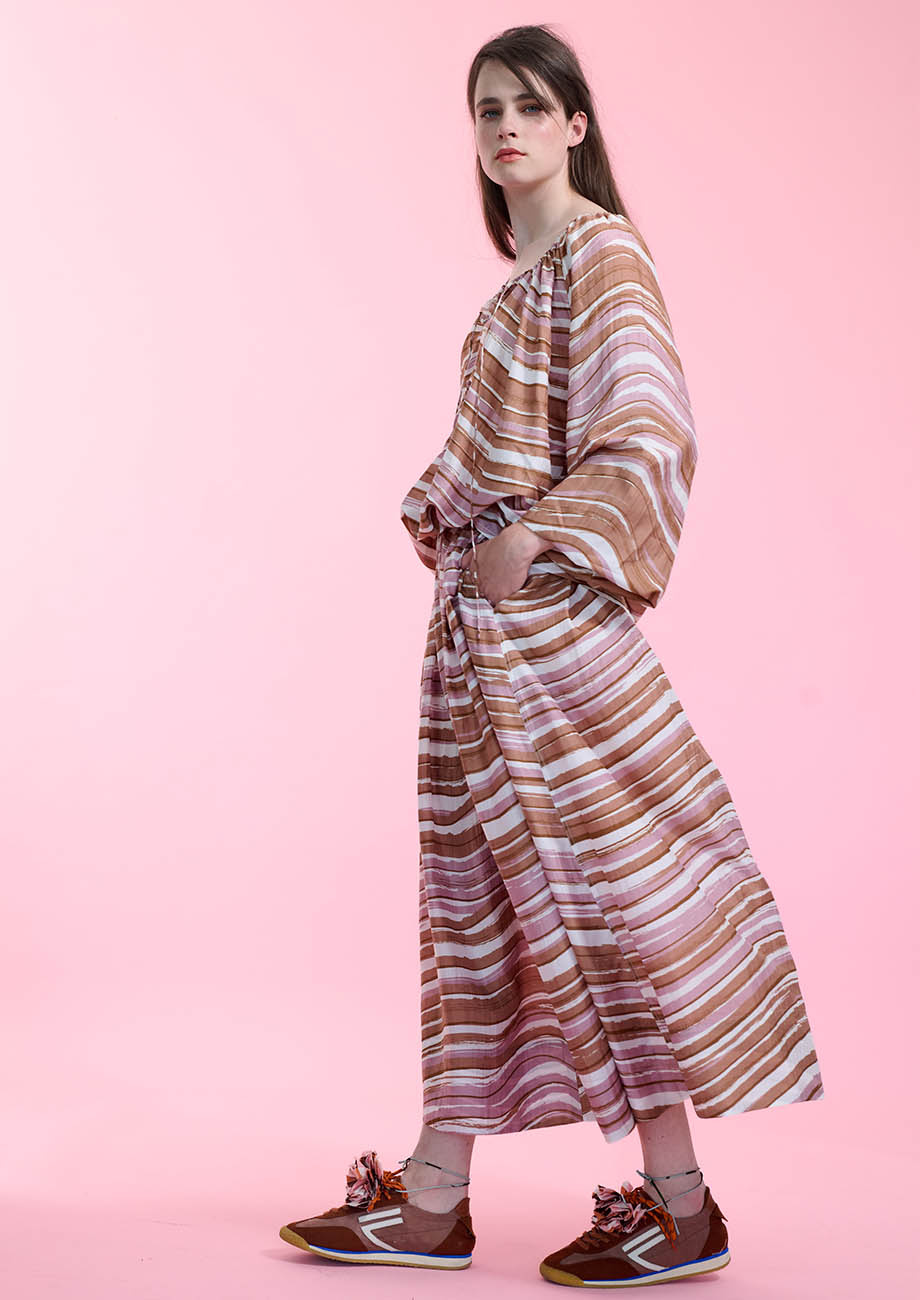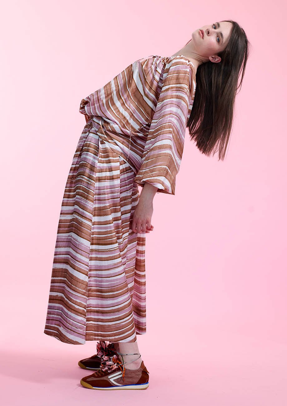 LONG SILK SKIRT - WAVES NUDE