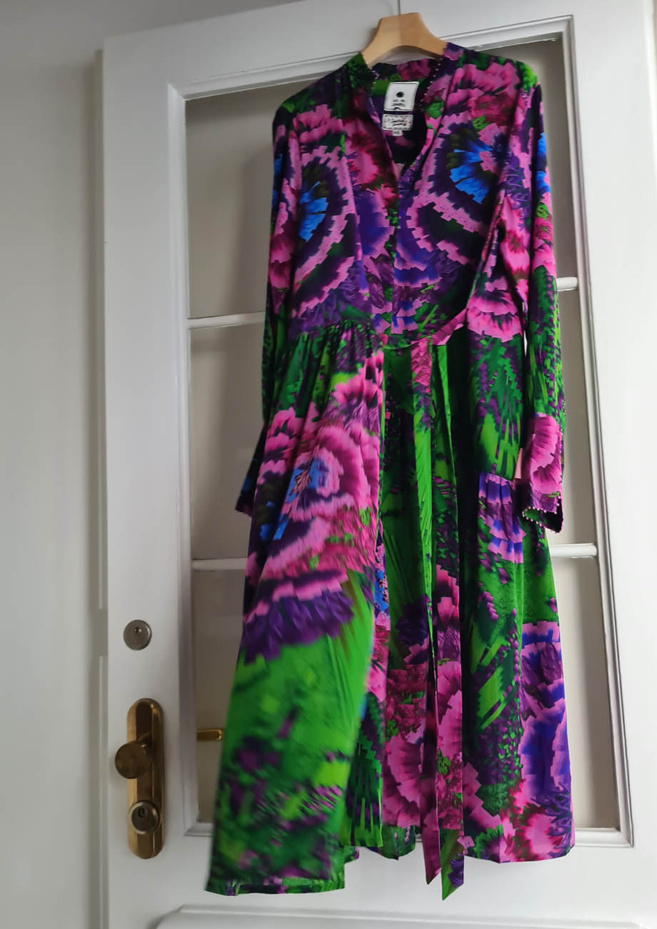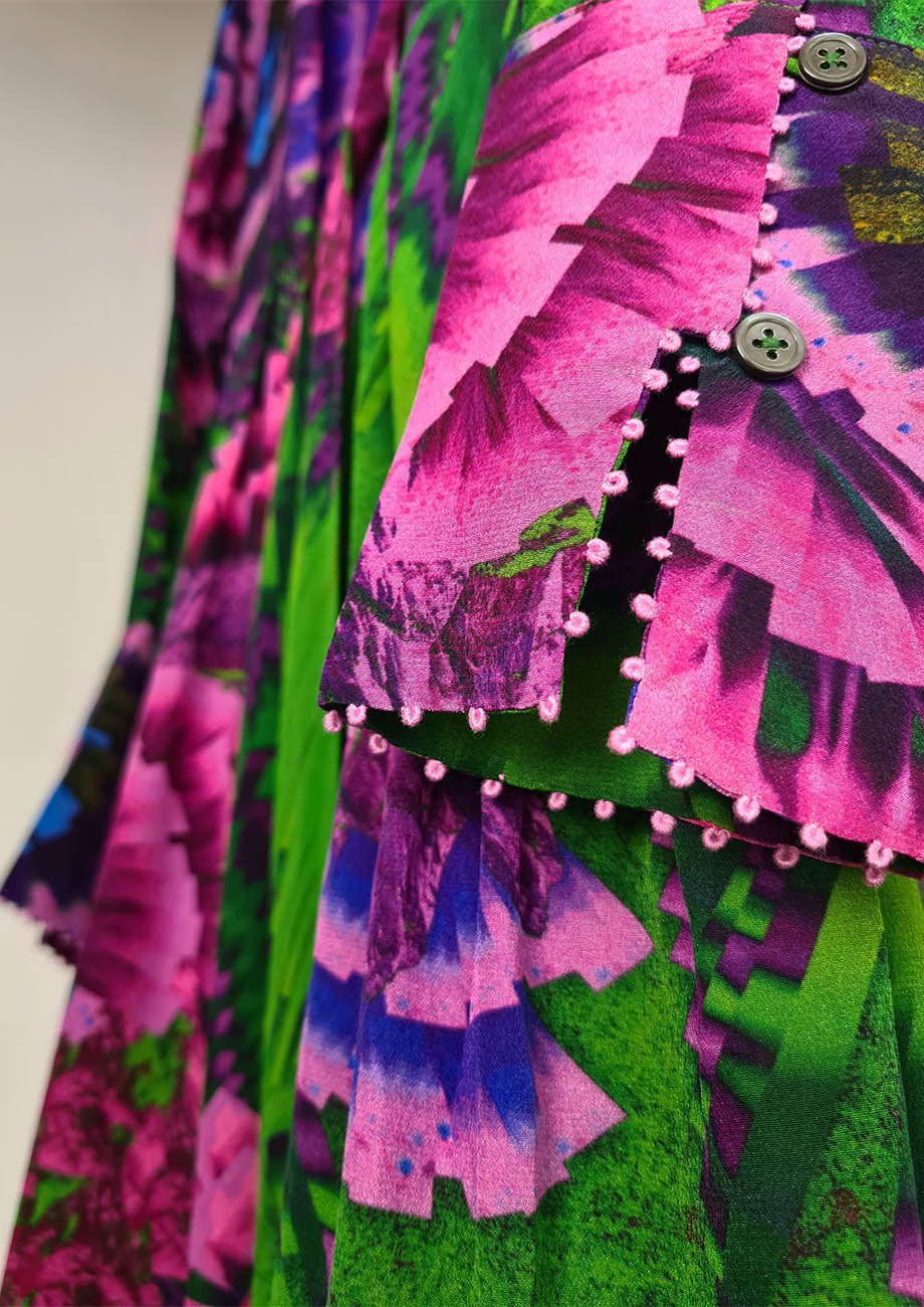 OUR FAVORITE SILK DRESS - PRINT GREEN FUCHSIA