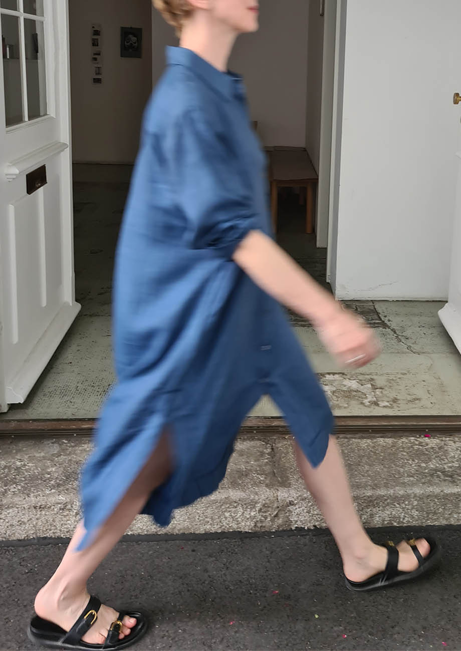 The seams are hand-embroidered, and a small seagull is embroidered on the front part.