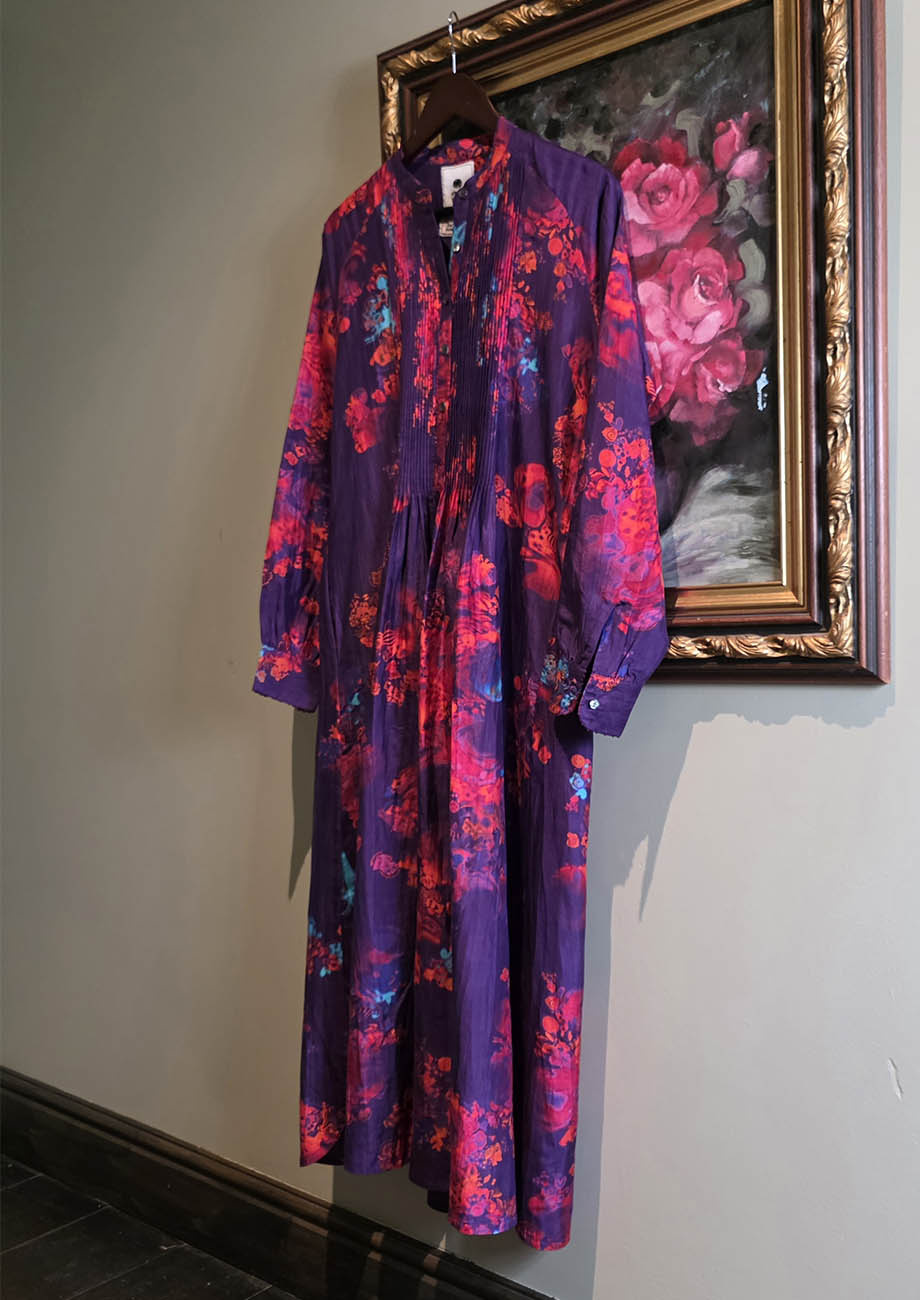 SUPER TUXEDO SILK DRESS MIDI - FANTASY EGGPLANT