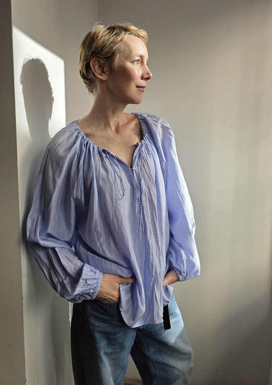 Our tunic blouse can be worn crashed or smooth. You decide after every wash. (For creases – simply roll it up while still slightly damp.)